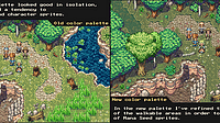 This is a minor update to the color palette of the asset. I mostly changed the grass, rocks, and cliffs. I also updated the mockups to demonstrate the improved coloration. The source files (TMX - Tile...