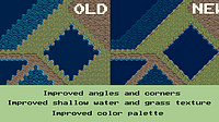 This is a pretty big update that makes some significant improvements to the corner/angle tiles on the single-level water's edge. I also made improvements to the grass and shallow water textures and tw...